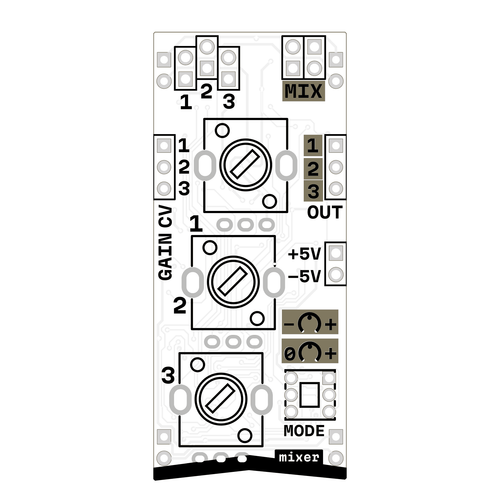 3-channel mixer with VCA on each channel, attenuverter mode, and individual outputs
