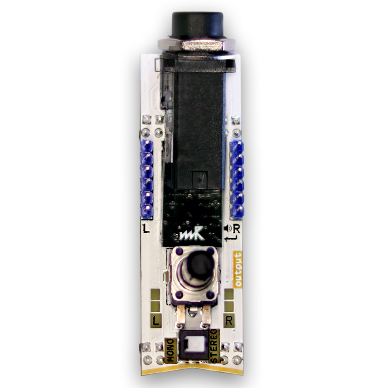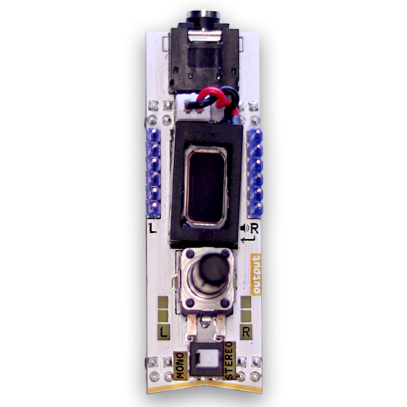 3.5 mm audio mono/stereo output with HQ headphone amplifier and small speaker, output level control