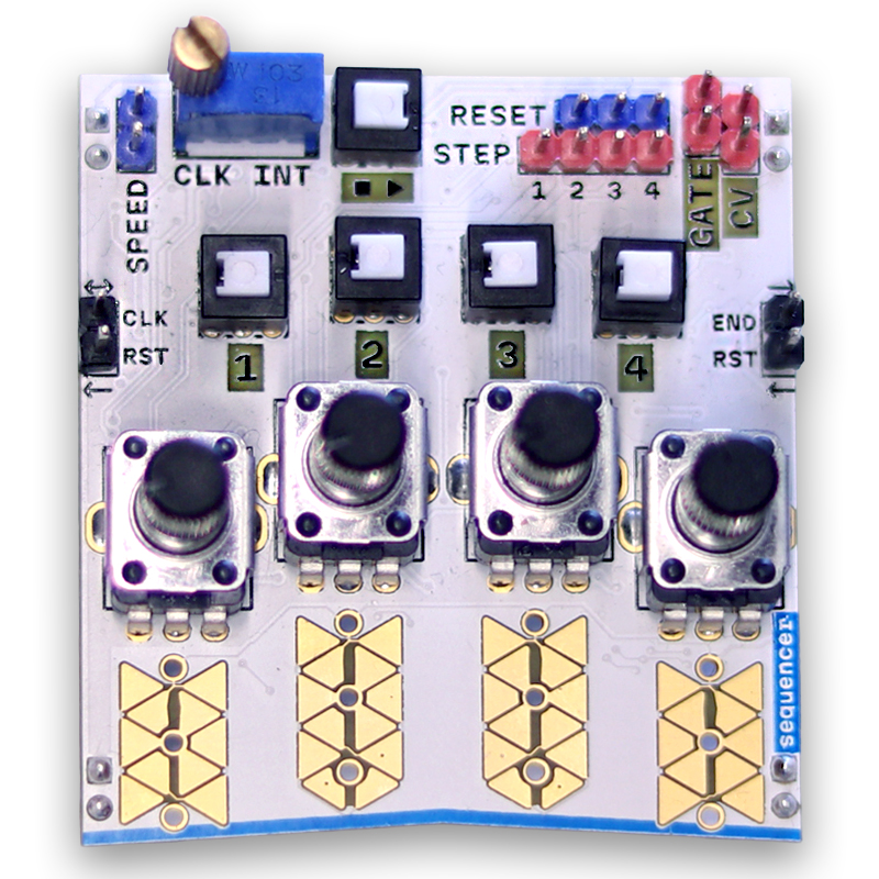 4-step CV/gate sequencer with keypads, internal clock, individual outputs, and chaining capabilities